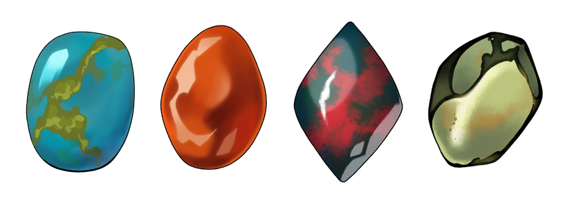 To make a somatei, you can start by picking a lifestone material. It can be any precious or semi-precious stone, or adjacent materials such as amber of fossils, whether real or fictional.