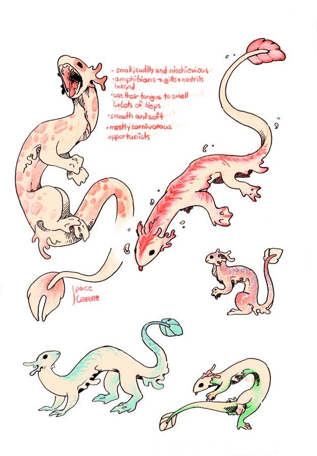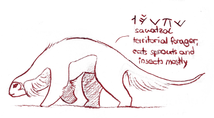 Tzolot are a popular pet that thrive in parks and gardens. They tend to pick a favourite tei they will follow around and greet with little squeaks of joy. Sauatzal (sa-wa-tzal) are also popular but rarely used as pets due to their size, but also the great deal of attention and extensive training they require. Though once bonded with their tei of choice, they make great bodyguards and pack animals.In the dark though, many greater monsters roam and danger is never far away. Somatei have a well organized militia that guard the outskirts of cities and patrol the roads, keeping everyone safe - most of the time. The most combat-thirsty tei specialize in monster handling, spending their time learning beasts’ patterns and predicting their behaviour to evacuate areas in time before an attack. Once everyone’s out, they can focus on the battle.