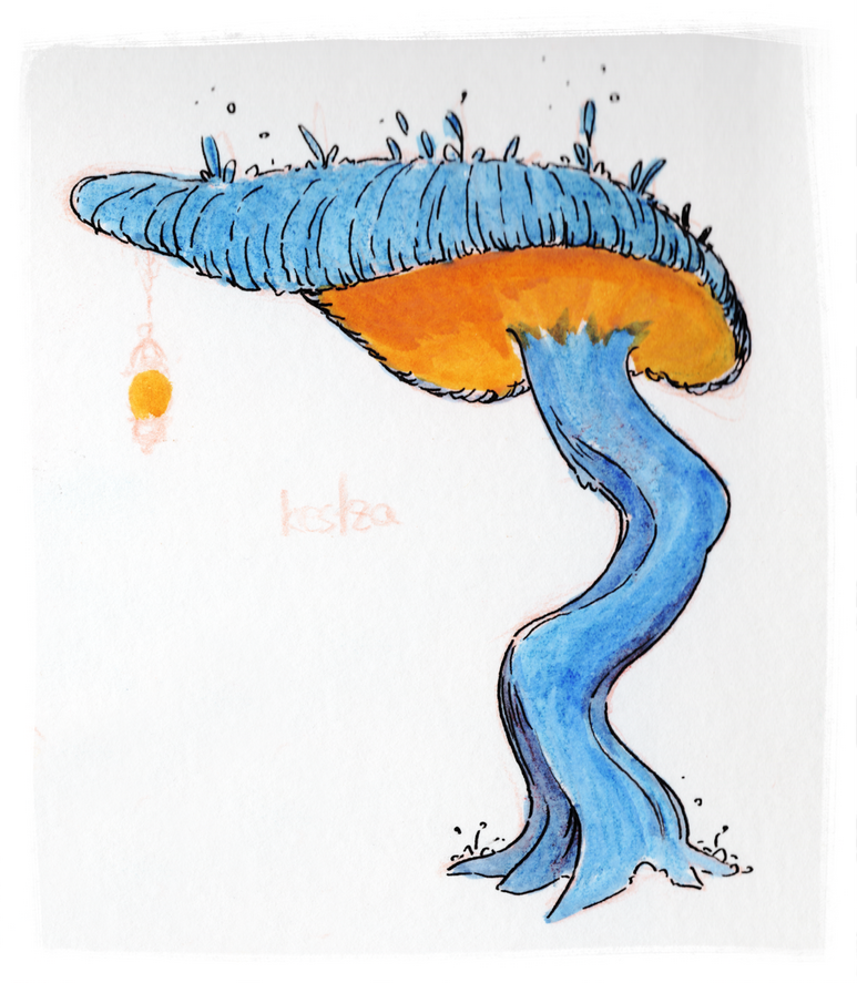 Literal and metaphorical pillars of Somatei life, keltza (or shadeshrooms) are a group of tall mushroom-like species. Blue keltza in particular have a thin trunk and a wide, flat cap that glows gently underneath. They are used as a base for building houses, as walls are built under the cap that serves as a roof.