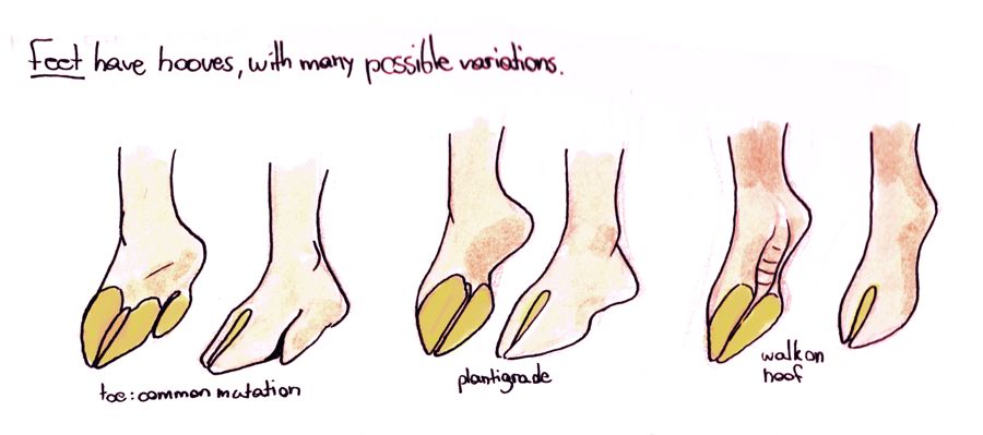 Somatei are plantigrades but have split hooves instead of toes. Some walk on their hooves only thanks to a mutation.