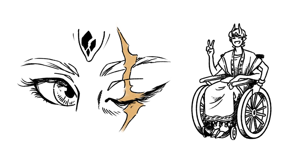 Horns (common): they have the same range of colours and textures as skin. They’re attached to the forehead or to the side of the head. Horned Tei are proficient magic users, as horns tips help magic flow.